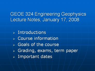 <Notice: Removed> GEOE 324 Engineering Geophysics Lecture Notes, January 17, 2008 PowerPoint PPT Presentation