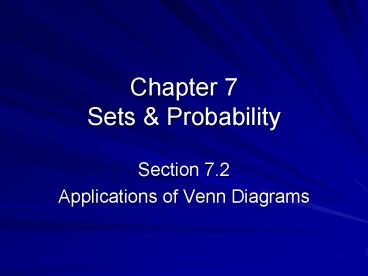 Title: Chapter 7 Sets & Probability Section 7.2 Applications of