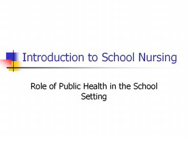 Introduction to School Nursing PowerPoint PPT Presentation