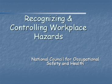 1Recognizing Controlling Workplace Hazards