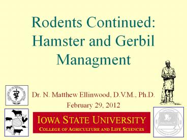 Title: Rodents Continued: Hamster and Gerbil Managment