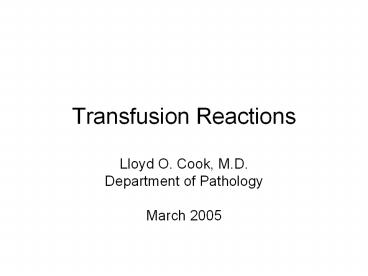 Transfusion Reactions PowerPoint PPT Presentation