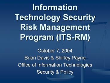 Information Technology Security Risk Management Program ITSRM PowerPoint PPT Presentation