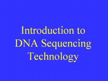 <Notice: Removed> Introduction to DNA Sequencing Technology PowerPoint PPT Presentation