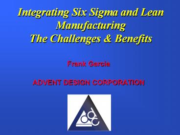 Title: Integrating Six Sigma and Lean Manufacturing The Challenges & Benefits