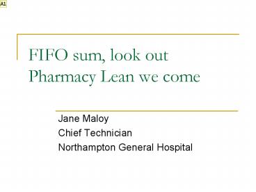 FIFO sum, look out Pharmacy Lean we come PowerPoint PPT Presentation
