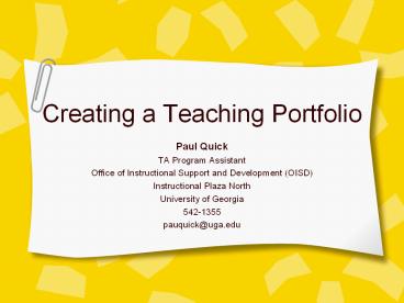 <Notice: Removed> Creating a Teaching Portfolio PowerPoint PPT Presentation