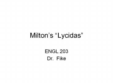 Miltons Lycidas