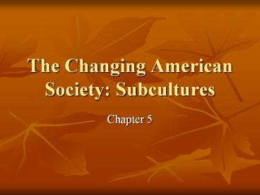 The Changing American Society: Subcultures PowerPoint PPT Presentation
