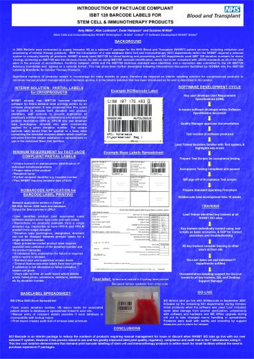 1INTRODUCTION OF FACT/JACIE COMPLIANT ISBT 128