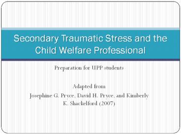 1Secondary Traumatic Stress and the Child Welfare