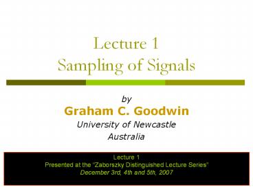 Title: Lecture 1 Sampling of Signals