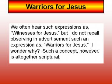<Notice: Removed> Warriors for Jesus PowerPoint PPT Presentation