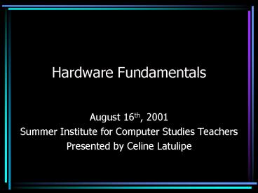 Hardware Fundamentals. August 16th, 2001. Summer Institute for Computer Studies Teachers ... Unplug other end of ribbon cable from motherboard and label it HD ribbon' ... – PowerPoint PPT presentation
