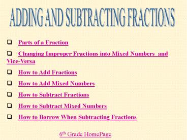Title: ADDING AND SUBTRACTING FRACTIONS