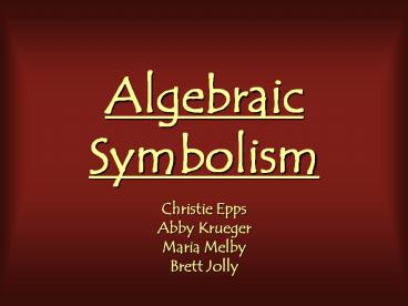 <Notice: Removed> Algebraic Symbolism PowerPoint PPT Presentation