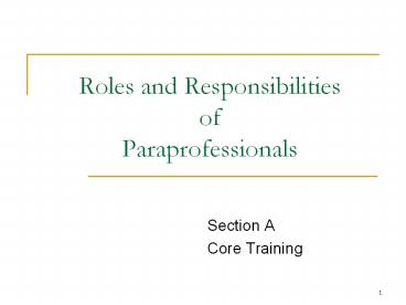 1Roles and Responsibilities ofParaprofessionals