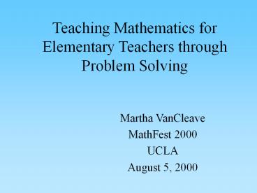 <Notice: Removed> Teaching Mathematics for Elementary Teachers through Problem Solving PowerPoint PPT Presentation