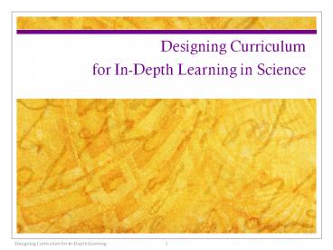 <Notice: Removed> Designing Curriculum for In-Depth Learning in Science PowerPoint PPT Presentation