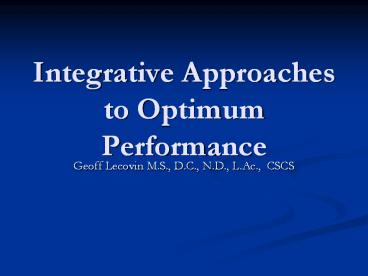 Title: Integrative Approaches to Optimum Performance