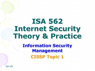 privilege, mandatory vacations etc. - Some Examples for standards ISO 17799 ISO