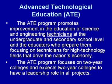 Advanced Technological Education (ATE) PowerPoint PPT Presentation
