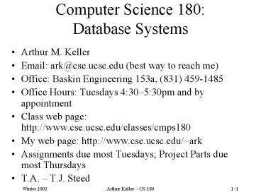 Title: Computer Science 180: Database Systems Arthur M. Keller
