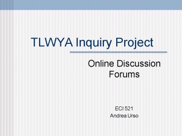 TLWYA Inquiry Project PowerPoint PPT Presentation