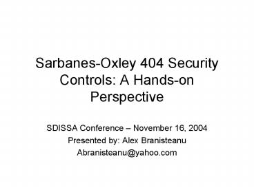 Title: Sarbanes-Oxley 404 Security Controls: A Hands-on Perspective
