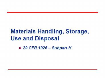 Materials Handling, Storage, Use and Disposal PowerPoint PPT Presentation