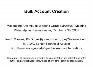<Notice: Removed> Bulk Account Creation PowerPoint PPT Presentation