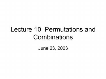 Title: Lecture 10 Permutations and Combinations June 23, 200