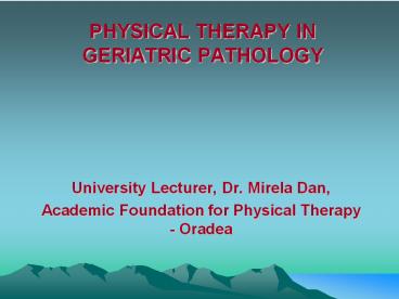 Title: PHYSICAL THERAPY IN GERIATRIC PATHOLOGY University Lecturer