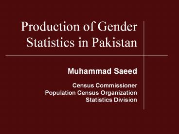 Title: Production of Gender Statistics in Pakistan