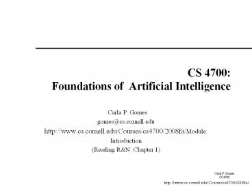 Prof. Gomes Office 5133 Upson Hall Phone 255