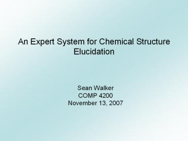 <Notice: Removed> An Expert System for Chemical Structure Elucidation PowerPoint PPT Presentation