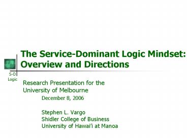 <Notice: Removed> The Service-Dominant Logic Mindset: Overview and Directions PowerPoint PPT Presentation