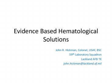 Title: Evidence Based Hematological Solutions