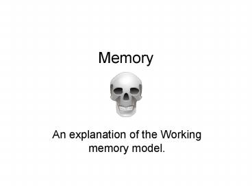 Memory An explanation of the Working memory model. A diagram...what the hell is this??? Psychologist All as one! – PowerPoint PPT presentation