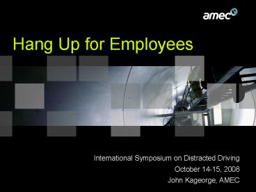 Driving October 14-15, 2008 John Kageorge, AMEC