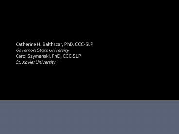 - Catherine H. Balthazar, PhD, CCC-SLP