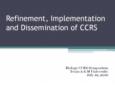<Notice: Removed> Refinement, Implementation and Dissemination of CCRS PowerPoint PPT Presentation
