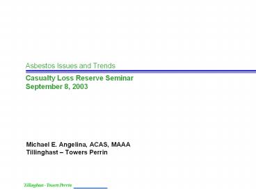 initiative for these types of exposures. - Prior to rejoining Tillinghast in January 2000,