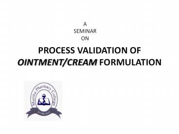 Title: PROCESS VALIDATION OF OINTMENT/CREAM FORMULATION