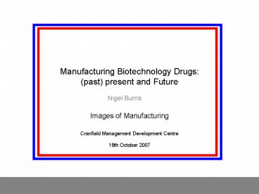 Title: Manufacturing Biotechnology Drugs: past present and Future