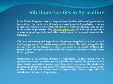 Job Opportunities in Agriculture PowerPoint PPT Presentation