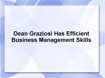 Title: Dean Graziosi Has Efficient Business Management Skills