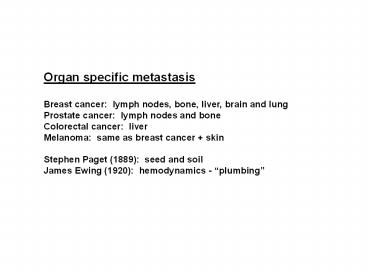 <Notice: Removed> Organ specific metastasis PowerPoint PPT Presentation