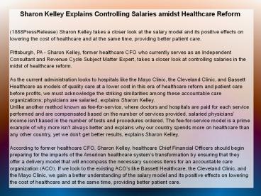 Title: Sharon Kelley Explains Controlling Salaries amidst Healthcare Reform