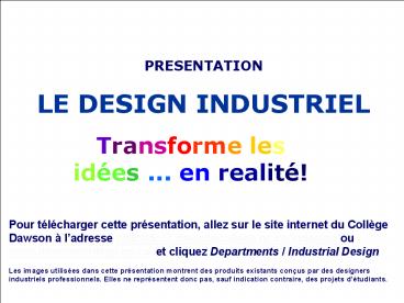 <Notice: Removed> Industrial Design Programme Dawson College PowerPoint PPT Presentation